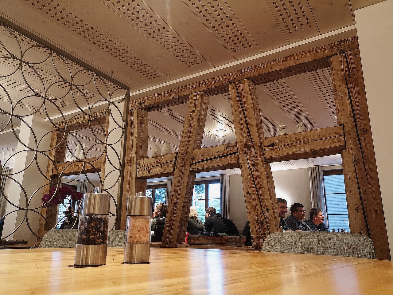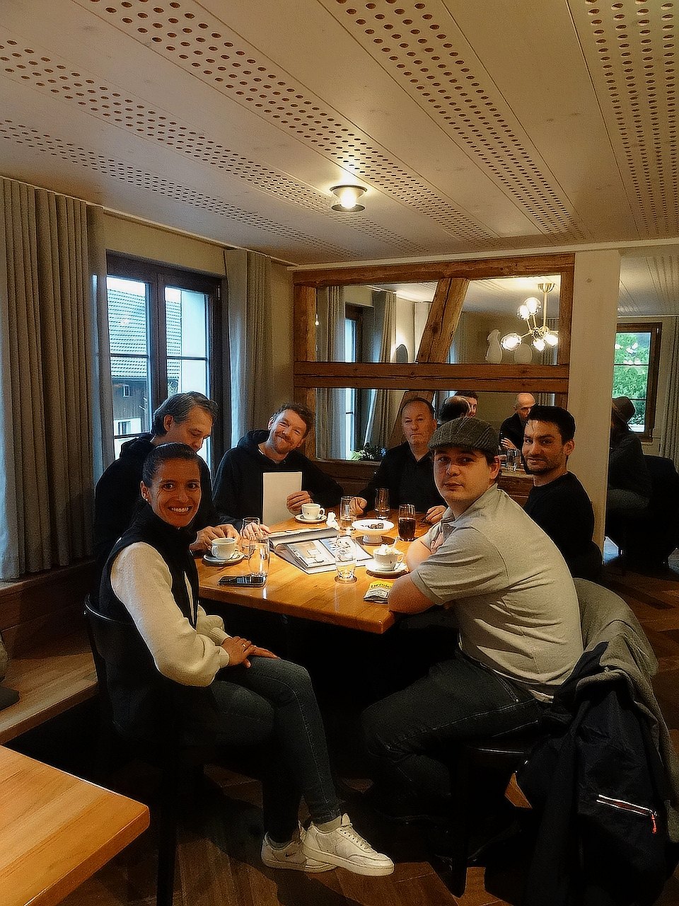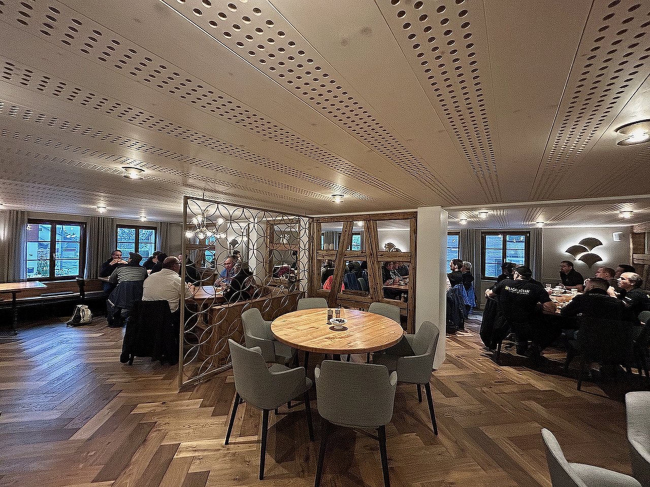 Die erste Station des diesjährigen Betriebsausflugs ist das «Restaurant Kreuz» in Zuzwil. Unser Gastgeber, Patrick Züger, berichtet uns neben dem sehr feinen Znüni von der Sanierung des Restaurants und den Umbauarbeiten mit LIGNATUR. Das Ergebnis kann sich sehen lassen! Beste Raumakustik durch die LIGNATUR-Elemente überzeugt heute alle LIGNATURis, toll. Gestärkt und gut gelaunt geht es weiter mit dem Car nach Roggwil.