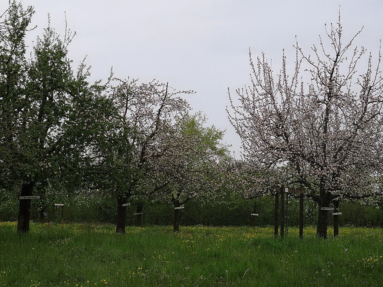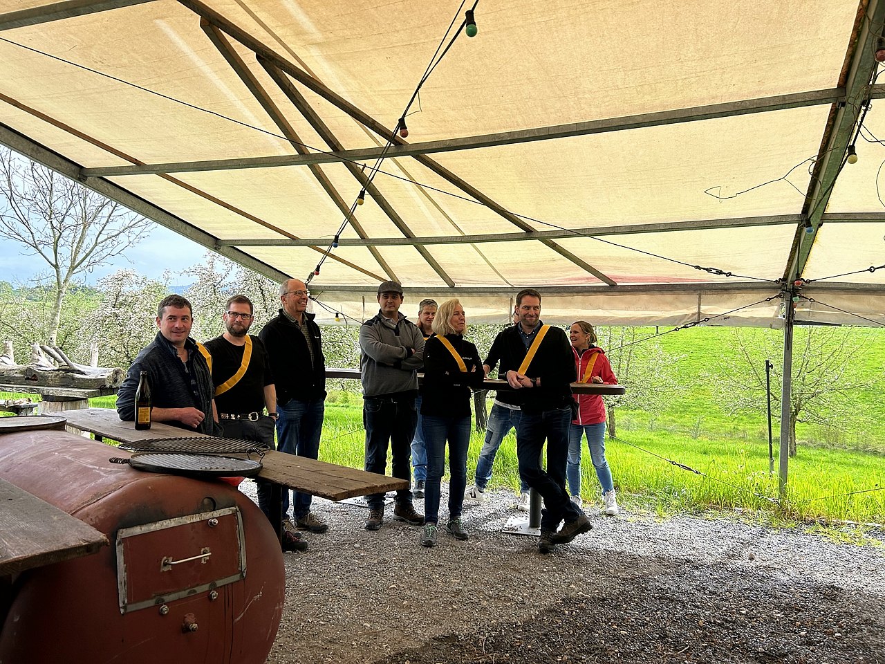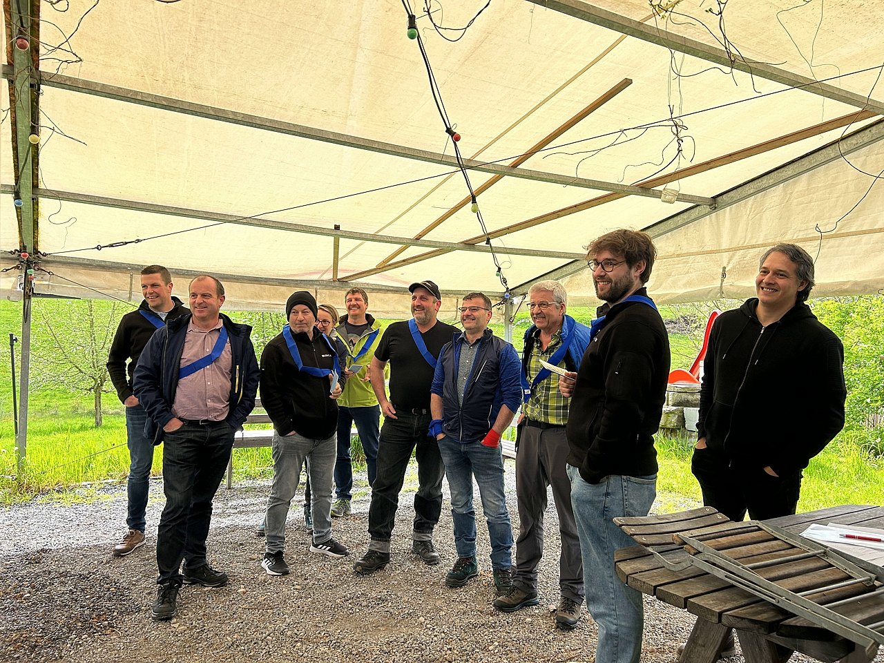 Vorbei an blühenden Apfelbäumen, Birnen-, Zwetschgen, Pflaumen-, Kirsch- und Nussbäumen erreichen wir die Obstsortensammlung in Roggwil. Fachmann Willi nimmt uns herzlich in Empfang. Mit dem Ziel, alte Obstsorten zu erhalten ist der Verein «Obstsortensammlung Roggwil» im stolzen Besitz jahrhundertealten Obstbäume, welche durch die Mitglieder gepflegt werden. Der Rundgang über die Obstwiesen veranschaulicht die Arbeit des Vereins eindrücklich.