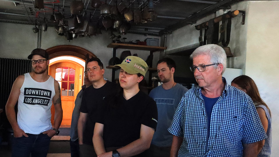 Der letzte Programmpunkt führte uns zur Klangschmiede, wo wir dem Schmied bei seiner Arbeit über die Schultern schauen durften. Es war faszinierend zu beobachten, wie aus rohem Material kunstvolle Klangobjekte entstehen. Er erklärte uns die Techniken und die Leidenschaft, die hinter seinem Handwerk stecken. Diese Erfahrung gab uns nicht nur einen Einblick in die Kunst des Schmiedens, sondern auch in die Bedeutung von Handwerk und Tradition. Während der Führung konnten wir nicht nur die beeindruckenden Klanginstallationen bewundern, sondern auch selbst aktiv werden. Unsere Kursleitende, Leonie Holenstein und Ueli Ammann, haben uns mit viel Leidenschaft in die Geheimnisse der Klangkunst eingeweiht.