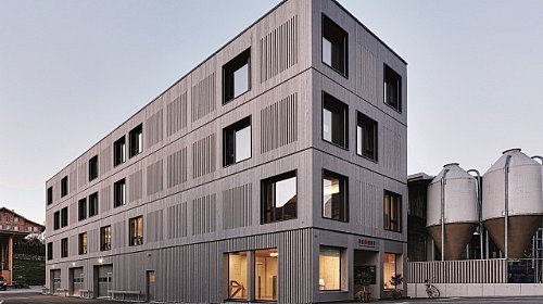Wie sieht gelungene Corporate Identity für ein Holzbauunternehmen aus? Indem man ein Firmengebäude plant, das innen wie außen pure Holzbaukompetenz verkörpert und für einen zeitgemäßen Umgang mit dem traditionsreichen Baustoff steht. Der Büroneubau der Remund Holzbau AG verkörpert diese Werte auf ganzer Linie. Für einen guten Schallschutz und ein ungestörtes Arbeiten im Gebäude setzte der Bauherr auf LIGNATUR-Deckenelemente vom Typ silence 12.