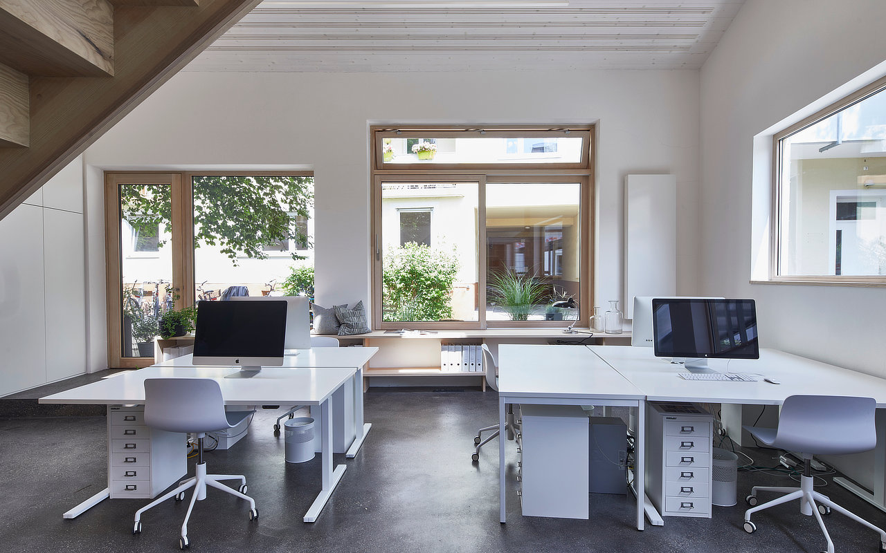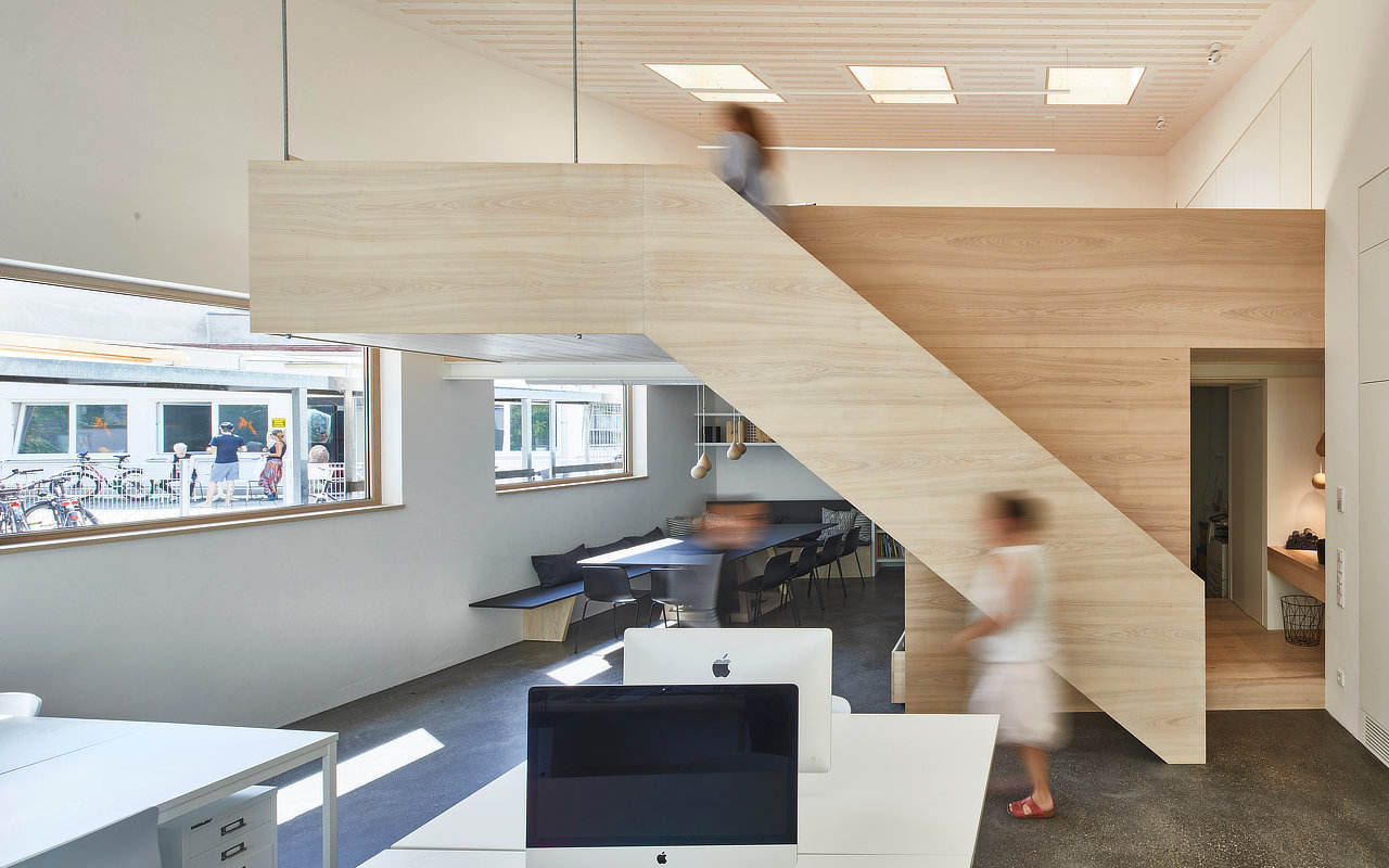 Dass Birte Raff und Eva Petri ihr neues Büro im Gebäude einer ehemaligen Autowerkstatt bauen durften, war ein absoluter Glücksfall. Die Inhaberinnen von «pur architektur» entwarfen ein lichtdurchflutetes Büro mit grosser Erdgeschossfläche, einer Galerie und viel Stauraum, das ganz ihren Vorstellungen und Entwürfen entspricht.
