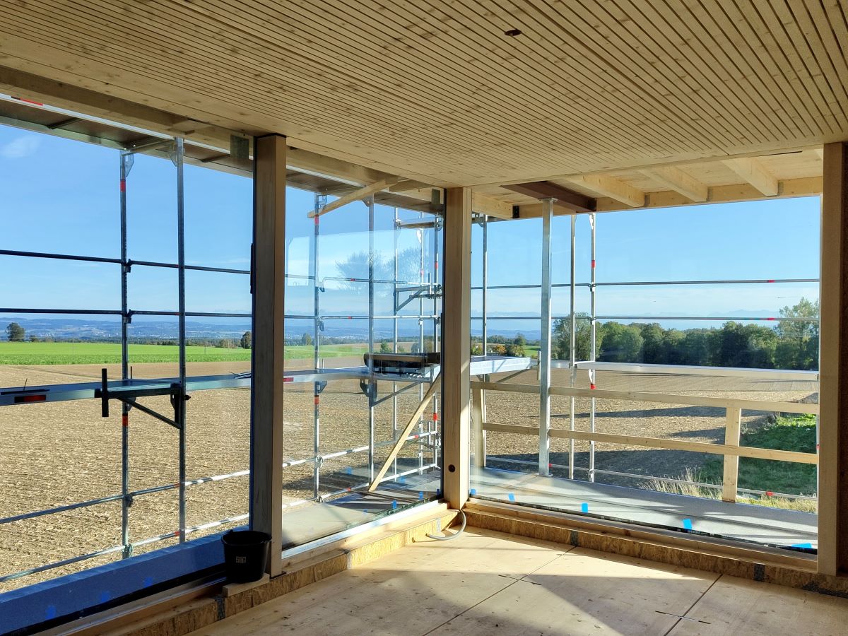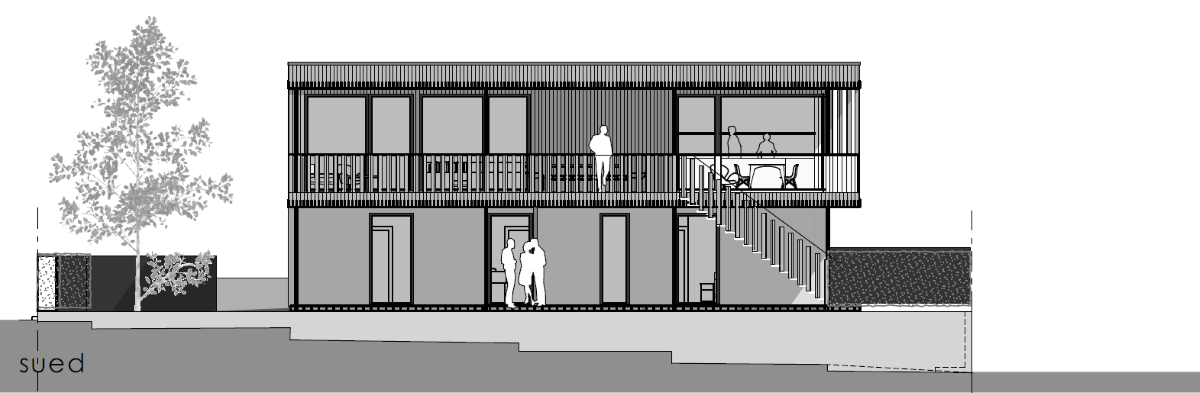 Die zweigeschossige Kubatur in Anlehnung an den Bauhausstil wurde in Holzständerbauweise geplant und ausgeführt. Auf insgesamt 185m2 Wohnfläche wird das Konzept „unten schlafen oben wohnen“ verfolgt, um die Aussicht auf das oberschwäbische Schussental in den unterschiedlichen Wohnbereichen zelebrieren zu können.