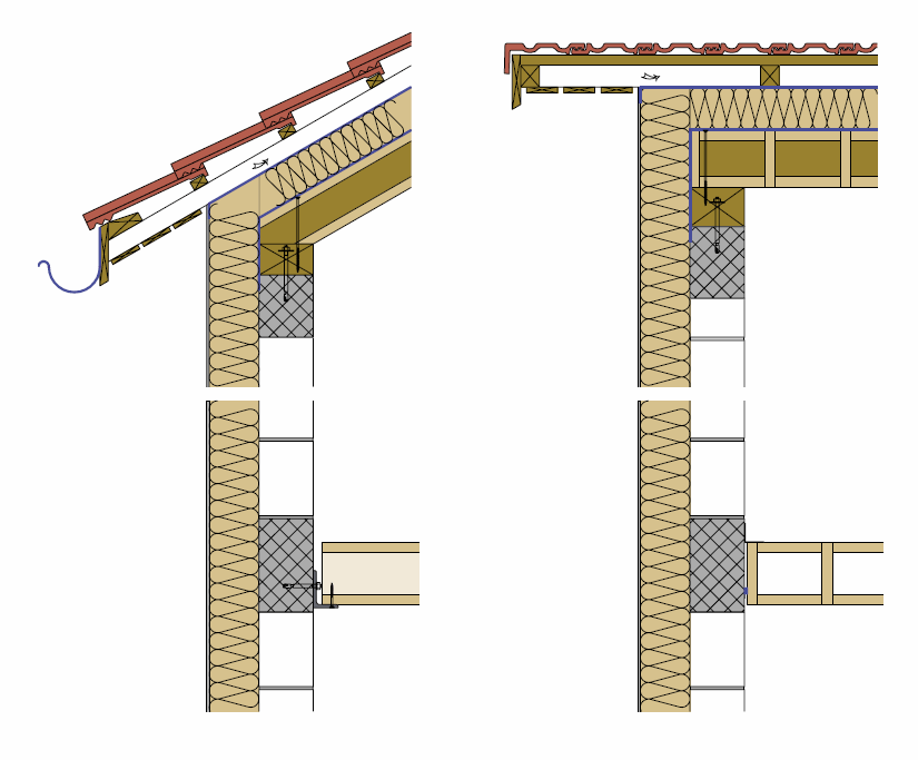 Führen Sie das Detail so aus, dass sich ein Element auch anheben kann, falls aus raumklimatischen und bauphysikalischen Gründen eine Holzfeuchtedifferenz zwischen der oberen und unteren Lamelle auftritt.